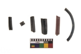| Description / विवरण | Group of glass bangles which are opaque plain black and blue in colour.One fragment is thick decorated with parallel grooves and ridged on the outer surface. |