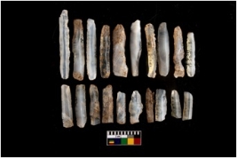 | Description / विवरण | A set of 20 intact microlithic blades, made up of chalcedony. All these blades have retoching and sharp edges. |