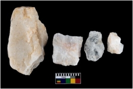 | Description / विवरण | There are n-4 of Cores. All are made of Quartz.They are fully fluted cores without any trace of Crested ridge flake. |