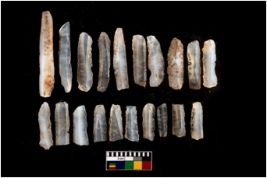 | Description / विवरण | A set of 20 intact microlithic blades, made up of chalcedony. All these blades have retoching and sharp edges. |