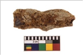 | Description / विवरण | A broken specimen of unidentified iron fragment. It is rusted. |