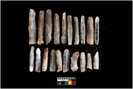 | Description / विवरण | A set of 20 intact microlithic blades, made up of chalcedony. All these blades have retoching and sharp edges. |