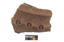 | Description / विवरण | A fragment of a ribbed coarse red ware with punctured circles on the ridge. |
