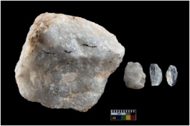 | Description / विवरण | There are n-4 of Cores. All are made of Quartz.They are fully fluted cores, 1 with trace of Crested ridge flake. |