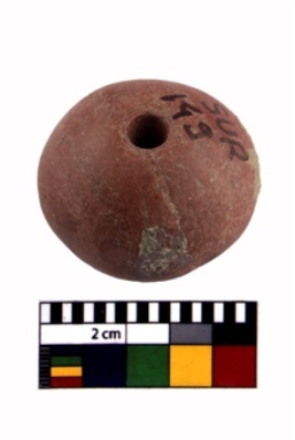 | Description / विवरण | Red in colour, flat base amalaka shaped with perforation. |