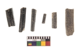 | Description / विवरण | Group of glass bangles which are opaque plain black in colour.One fragment is decorated with parallel grooves and ridges on outer surface of the bangle. |