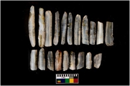 | Description / विवरण | A set of 20 intact microlithic blades, made up of chalcedony. All these blades have retoching and sharp edges. |