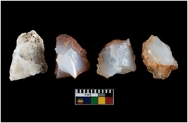 | Description / विवरण | There are n-4 of intact cores. Out of them 3 are made up of Chalcedony and 1 is made up of Chert.There are multidirectional irregular dominant scar pattern on both dorsal and ventral face of the cores. |