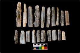 | Description / विवरण | A set of 20 intact microlithic blades, made up of chalcedony. All these blades have retoching and sharp edges. |