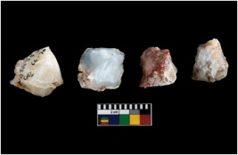 | Description / विवरण | There are n-4 of intact cores made up of Chalcedony. There are multidirectional irregular dominant scar pattern on both dorsal and ventral face of the cores. |