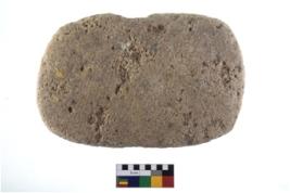 | Description / विवरण | A partially broken specimen of a roughly rectangular shaped Grinding stone with oval section.It is flat base with grounded edges. |