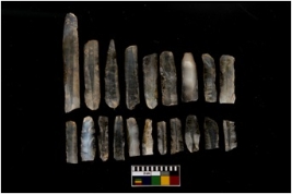 | Description / विवरण | A set of 20 intact microlithic blades, made up of chalcedony. All these blades have retoching and sharp edges. |