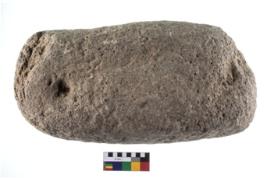 | Description / विवरण | A partially broken specimen of a roughly rectangular shaped Grinding stone with oval section.It is flat base with grounded edges. |