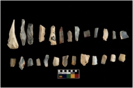 | Description / विवरण | There are a n - 26 micro blades. Among them n - 9 are made of chert and rest n -- 17 are made of Chalcedony. In this assemblage n - 2 blades are complete. n - 1 blade is backed . n - 7 blades are retouched. On the other hand one blade is having some evidence of flaking within its upper surface with a striking platform . All these are made from Chalcedony |