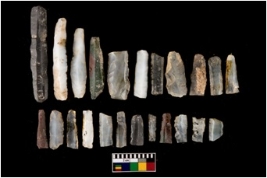 | Description / विवरण | A set of 20 intact microlithic blades. Wiyhin this assembkage,15 are made up of chalcedony, 5 are made up of chert and 3 are made up of milky quartz. All these blades have retoching and sharp edges. |