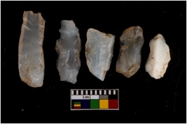 | Description / विवरण | There are 5 small and flat cores, crested ridge flakes. Within this assemblage, 4 are made up of chalcedony and 1 is made up of milky quartz. |