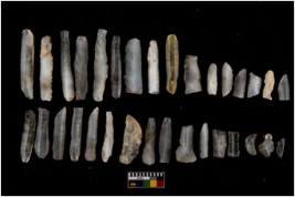 | Description / विवरण | A set of 32 intact microlithic blades, made up of chalcedony. Within this assemblage, 30 are made up of chalcedony, 1 is made of vchert and remaining 1 is made up of milky quartz. All these blades have retoching and sharp edges. |
