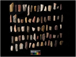 | Description / विवरण | There are n 67 of microliths. All of them are Chert. Some of them are partially broken. They show variation in colour, size and shape. Some of them are blunted back baldes, points, triangles, trapezes, crescent and truncated blades. |