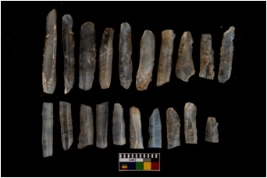 | Description / विवरण | A set of 20 intact microlithic blades, made up of chalcedony. All these blades have retoching and sharp edges. |