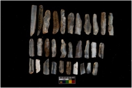 | Description / विवरण | A set of 31 intact microlithic blades. Within this assemblage, 29 are made up of chalcedony and remaining 2 are made up of chert. All these blades have retoching and sharp edges. |