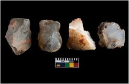 | Description / विवरण | There are n-4 of intact cores. Out of them 3 are made up of Chalcedony and 1 is made up of Chert. There are multidirectional irregular dominant scar pattern on both dorsal and ventral face of the cores. |