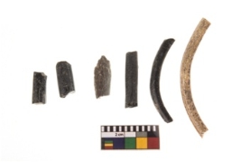 | Description / विवरण | The group of monochrome opaque plain black coloured fragments glass bangle . Variety in width. One fragment is green and blue in coloured. |