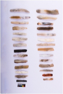 | Description / विवरण | A set of 28intact microlithic blades, made of chalcedony. All these blades have retouching and sharp edges. |