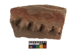 | Description / विवरण | A fragment of a red slip ware over which incised applique design has been made. |