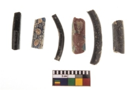 | Description / विवरण | The group of monochrome opaque plain black coloured fragments glass bangle . Variety in width and thickness. |