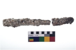| Description / विवरण | A specimen of an iron rod broken into two pieces. It is rusted. |