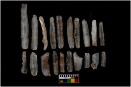 | Description / विवरण | A set of 20 intact microlithic blades, made up of chalcedony. All these blades have retoching and sharp edges. |