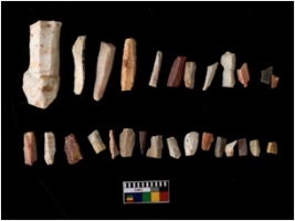 | Description / विवरण | There are n 28 of microliths. All of them are Chert. Some of them are partially broken. They show variation in colour, size and shape. Some of them are blunted back baldes, points, triangles, trapezes, crescent and truncated blades. |
