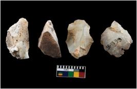 | Description / विवरण | There are n-4 of intact cores. Out of them 3 are made up of Chalcedony and 1 is made up of Chert. There are multidirectional irregular dominant scar pattern on both dorsal and ventral face of the cores. |