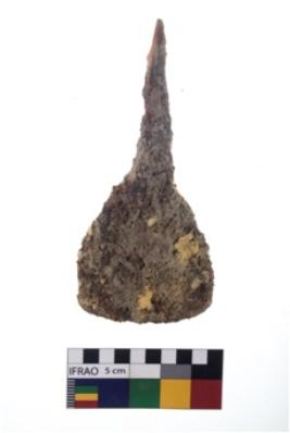| Description / विवरण | A specimen of iron adze with working edge. It is rusted. |