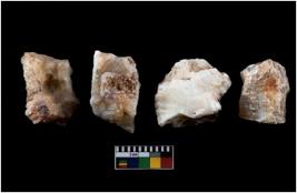 | Description / विवरण | There are n-4 of intact cores. Out of them 2 are made up of Chalcedony and 2 are made up of Chert. There are multidirectional irregular dominant scar pattern on both dorsal and ventral face of the cores. |