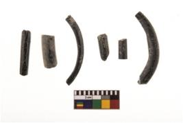 | Description / विवरण | The group of monochrome opaque plain black coloured fragments glass bangle . Variety in width and thickness. One fragment is decorated with white coloured dots on the upper surface of the bangle. |