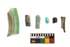 | Description / विवरण | The group of monochrome opaque plain black coloured fragments glass bangle . Variety in width and thickness. One fragment is terracotta unfinished. |