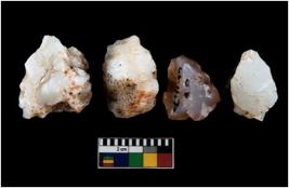 | Description / विवरण | There are n-4 of intact cores. Out of them 3 are made up of Chalcedony and 1 is made up of Chert. There are multidirectional irregular dominant scar pattern on both dorsal and ventral face of the cores. |