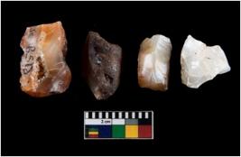 | Description / विवरण | There are n-4 of intact cores made up of Chalcedony. There are multidirectional irregular dominant scar pattern on both dorsal and ventral face of the cores. |