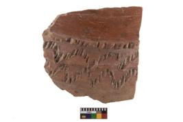 | Description / विवरण | Fragment of a ribbed red slipped ware, between the ridges a design of incised double zig zag lines ahvs been made. |