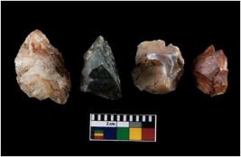 | Description / विवरण | There are n-4 of intact cores. Out of them 3 are made up of Chalcedony and 1 is made up of Chert. There are multidirectional irregular dominant scar pattern on both dorsal and ventral face of the cores. |