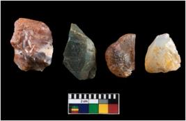 | Description / विवरण | There are n-4 of intact cores. Out of them 2 are made up of Chalcedony and 2 are made up of Chert. There are multidirectional irregular dominant scar pattern on both dorsal and ventral face of the cores. |
