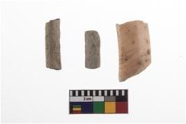 | Description / विवरण | The shell Bangle fragment is plain, centrely roundish and both side slightly slop. The bone Bangle fragment is roundish natural brown in coloured. Glass bangle fragment is blue in coloured. |