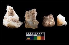 | Description / विवरण | There are n-4 of intact cores. Out of them 3 are made up of Chalcedony and 1 is made up of Chert. There are multidirectional irregular dominant scar pattern on both dorsal and ventral face of the cores. |