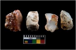 | Description / विवरण | There are n-4 of intact cores. Out of them 2 are made up of Chalcedony and 2 are made up of Chert. There are multidirectional irregular dominant scar pattern on both dorsal and ventral face of the cores. |