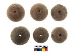 | Description / विवरण | Six Areca nut shaped beads with perforations. |