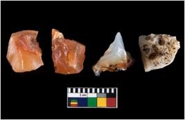 | Description / विवरण | There are n-4 of intact cores made up of Chalcedony. There are multidirectional irregular dominant scar pattern on both dorsal and ventral face of the cores. |