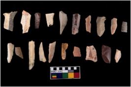 | Description / विवरण | There are n - 20 blades made from Chert. n - 5 blades are complete in shape .In these assemblage n - 2 blades are crescent , n- 1 blade is points. n -2 blades are triangle n - 3 blades are had been retouched. . Rests are partially broken and devoid of any kind of backing or retouching. |