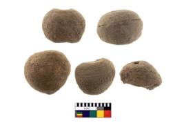 | Description / विवरण | Five Areca nut shaped beads with perforations. |