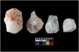 | Description / विवरण | There are n-4 of Cores. All are made of Quartz.Thet are fully fluted Cores, 2 with trace of Crested ridge flake |